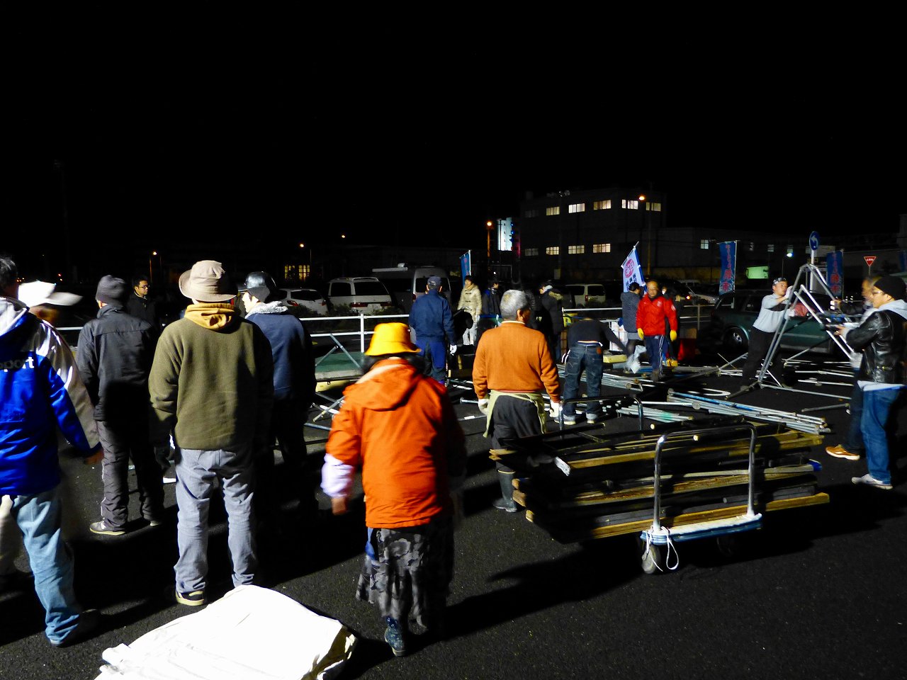 5:23 真っ暗な中朝市の皆さんとテント設営