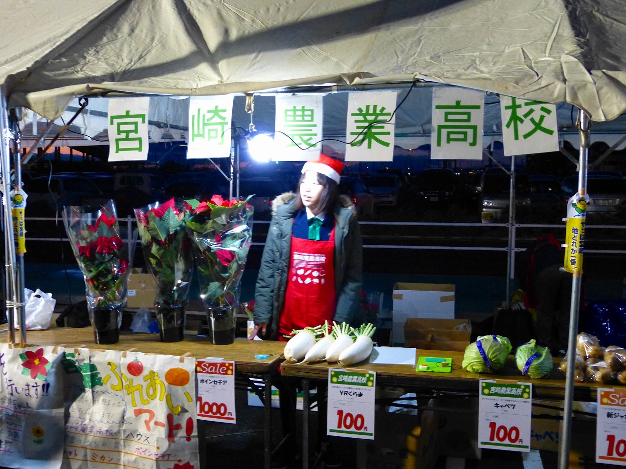 宮崎農業、ポインセチアと野菜です。3人で大丈夫かなと思いましたが、そんな心配は要りませんでした。
